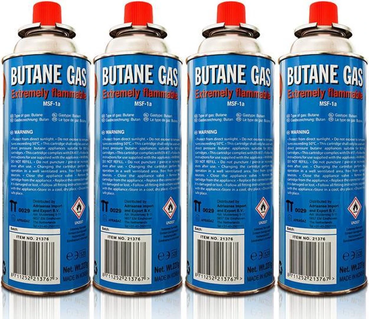 | Verpakkingsinhoud | 4 flessen met butaangas |