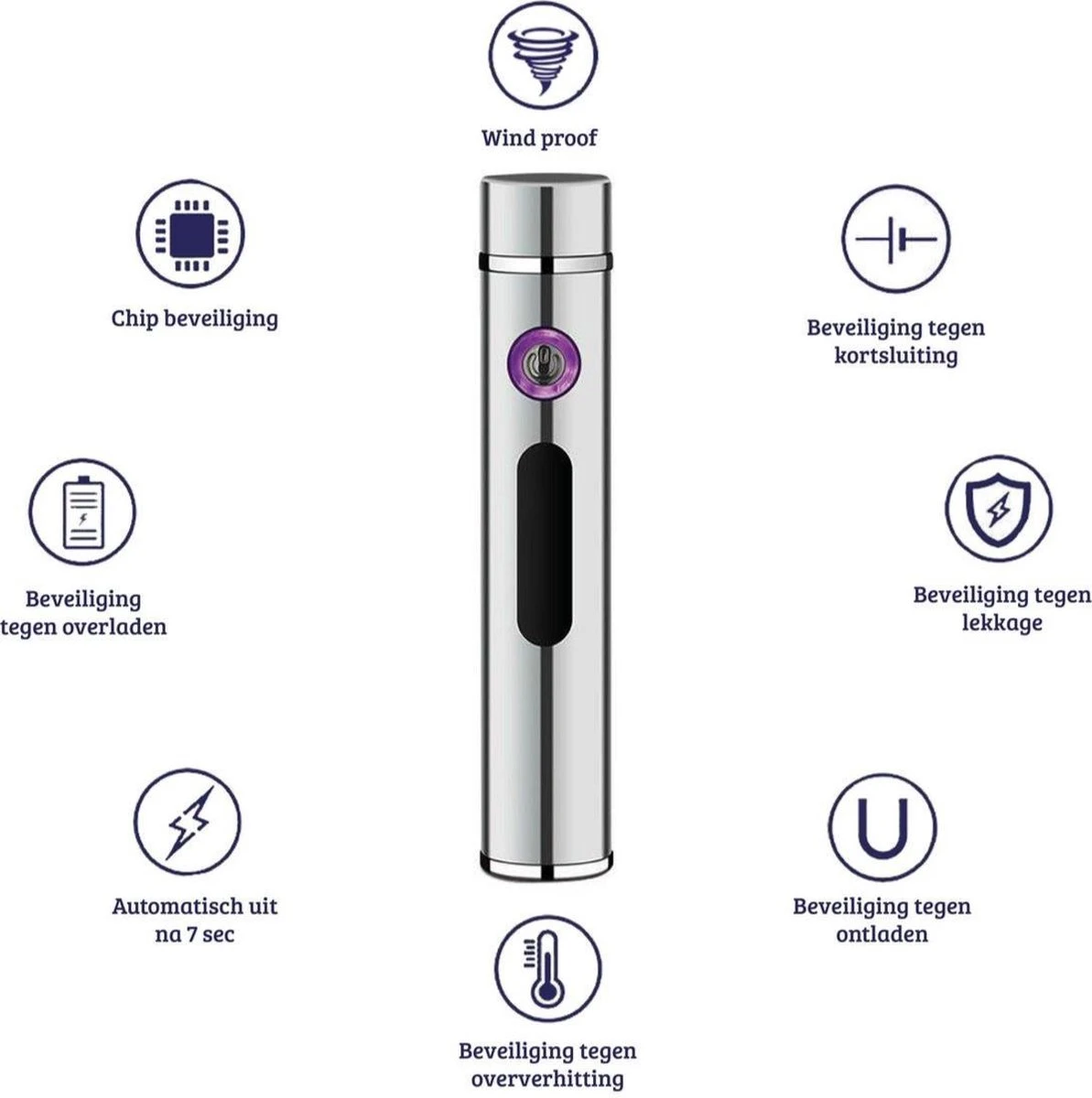 De elektrische aansteker met USB is met een lengte van 88 millimeter en een breedte van 60 millimeter erg compact en makkelijk mee te nemen. Bovendien is deze elektrische aansteker vlamloos en daardoor ook nog eens windbestendig. Hierdoor kun je de aansteker ook makkelijk buitenshuis gebruiken. Doordat de aansteker op elektriciteit werkt, is deze altijd veilig in gebruik. Daarnaast zit er de nodige beveiliging op: beveiliging tegen kortsluiting, lekkage, ontladen, oververhitting en overladen.