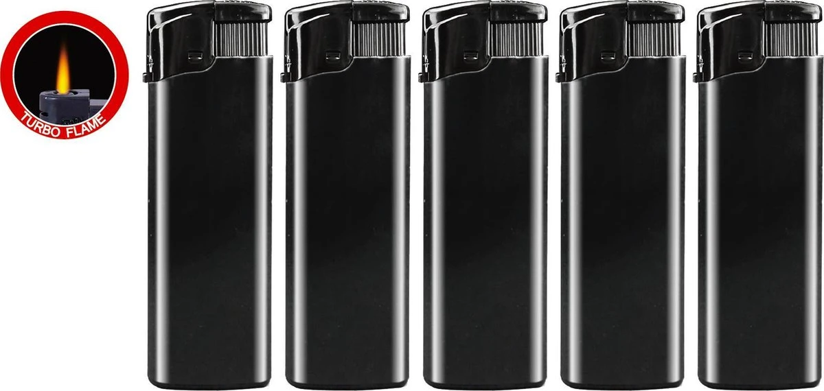 Set van vijf zwarte stormaanstekers van het merk Flameclub!